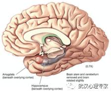 大量的实验研究结果表明,记忆是整个中枢神经系统的功能,是中枢神经系统的不同部位联合作用的结果,但不同的部位作用是不一样的。大脑中负责记忆、判断、分析、思考、操作的前额叶,位于脑袋前额头后面的那部分大脑皮层区域。海马体位于大脑丘脑和内侧颞叶之间,属于边缘系统的一部分,主要负责长时记忆的存储转换和定向等功能。